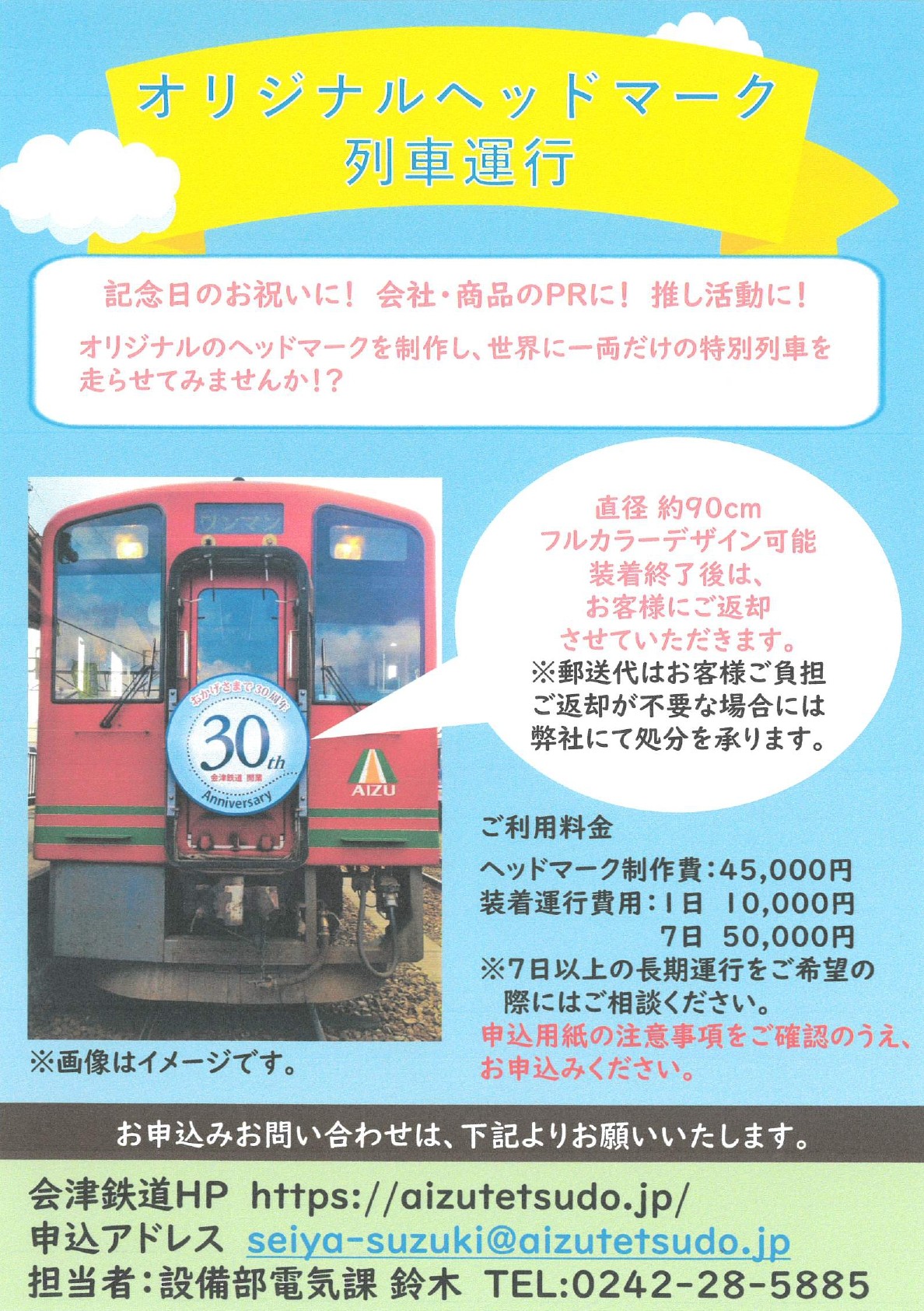 オリジナルヘッドマークで、世界に一両だけの特別列車を走らせてみませんか?